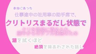 アクメ 本当にあった、仕事途中の社用車の助手席で、クリトリスまるだしの状態で、クリトリスを執拗に責められ、膣中からのダブル快感のため、潮を拭くほどの絶頂を味あわされた話し【無料女性向け同人】